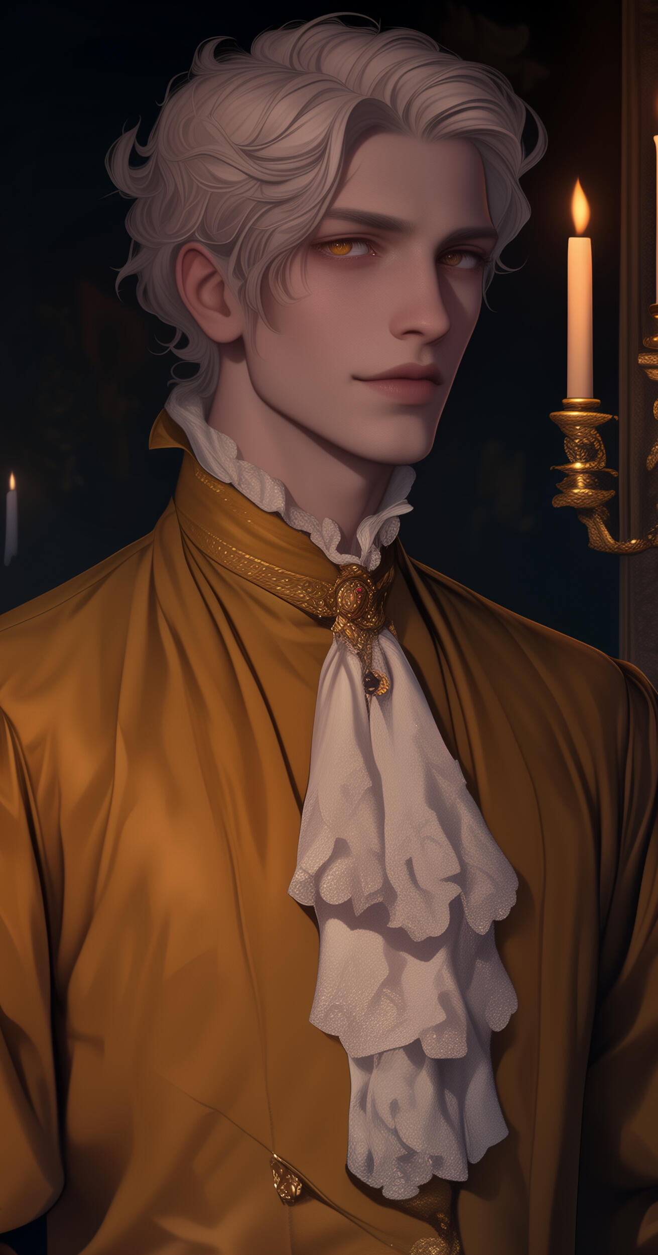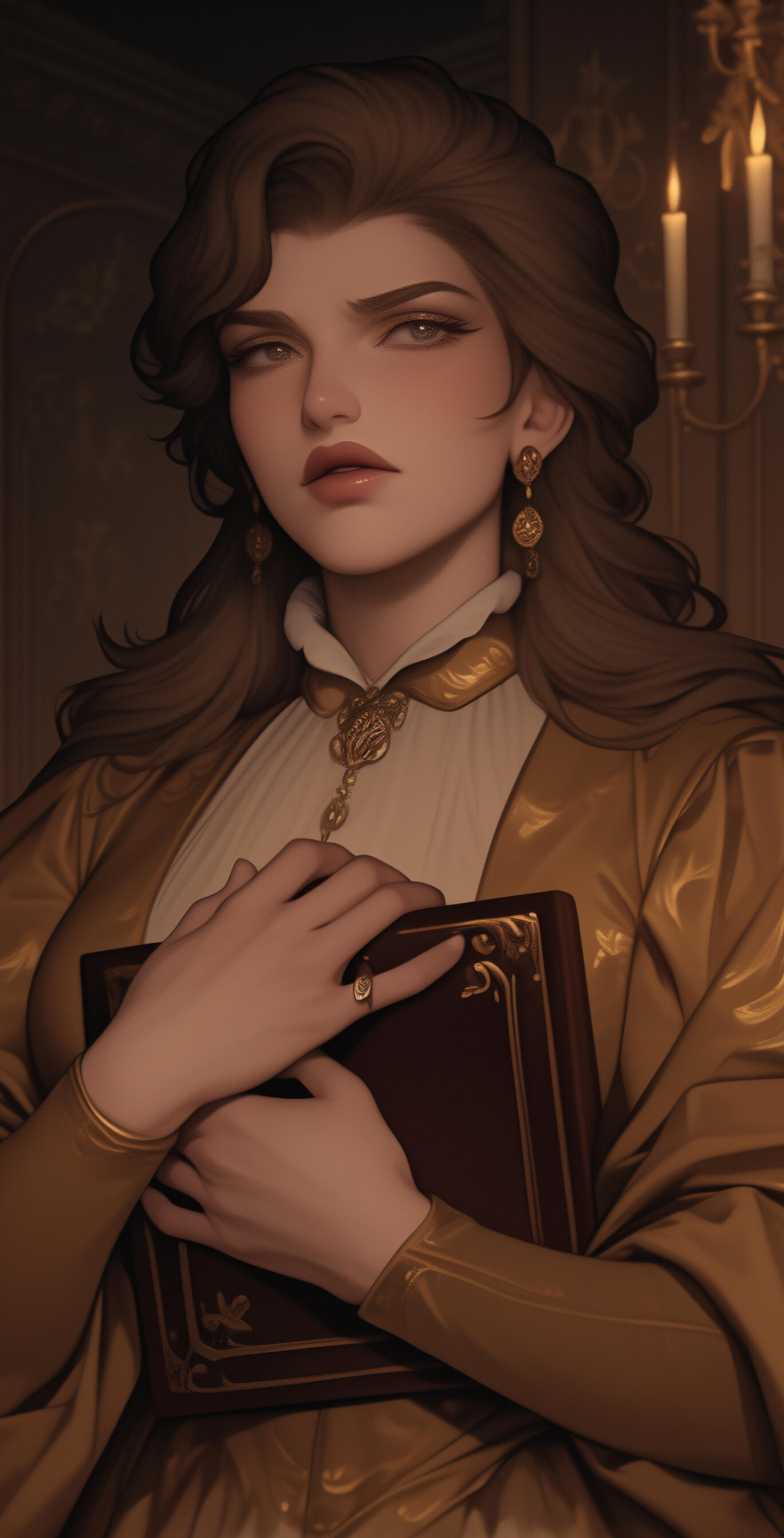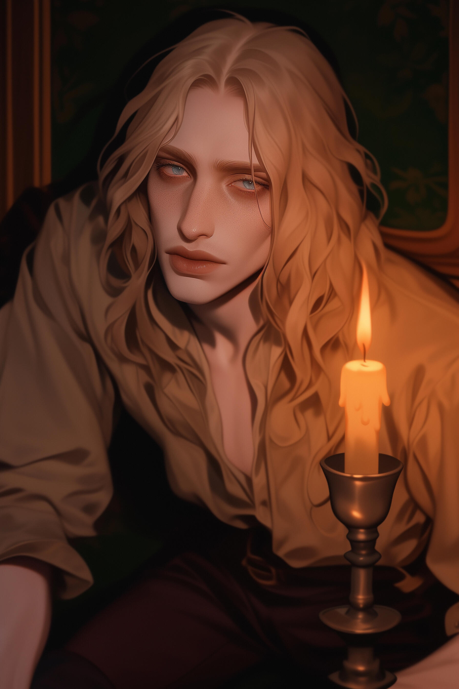 ❖ Lucien des Ombres-Dorées was Étienne’s youngest turned grandson and prettiest mistake—an 20-year-old "puppy prince" fashioned to be Léon’s shadow and plaything, turned more for his looks and eagerness than any real aptitude.❖ Raised on flattery and fear, Lucien trails after his elder brother on collections and at court, laughing when Léon laughs, smiling when he’s told, internalizing every cruel lesson about debt, breeding, and where he sits in the family food chain.❖ Behind the dimples and boyish charm, though, is a desperate need to please that makes him dangerous in quiet ways; Lucien will do almost anything—lie, lure, or ruin—to keep Étienne’s attention warm and Léon’s hand ruffling his hair instead of shoving him aside.