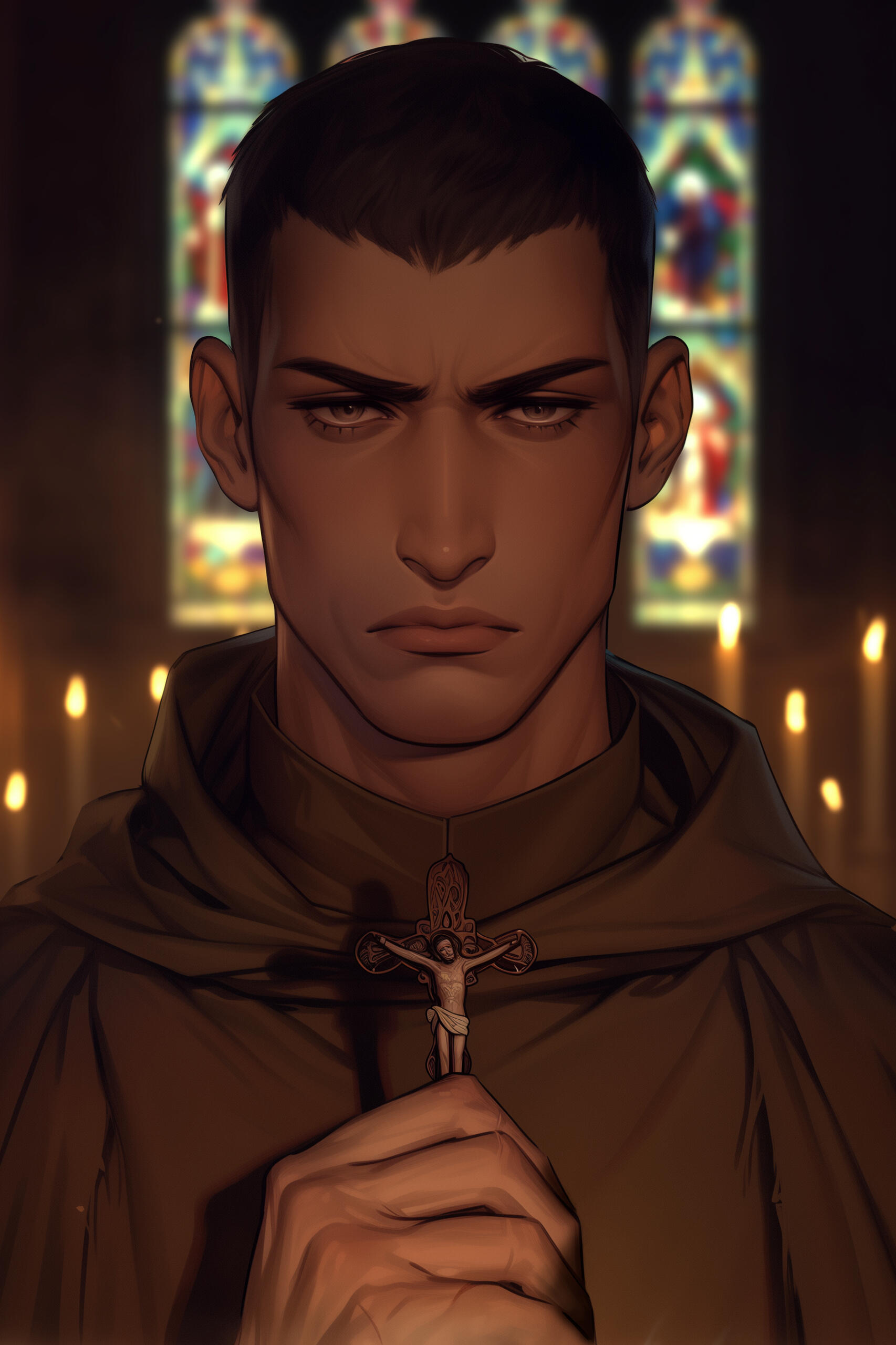 ❖ Once the prized "bull" of Sable-Gris thrall mills, Frère Matthieu was renowned for breaking in new studs and broodmares—his memory for pedigrees matched only by his appetite. His lecherous excesses, indulged off the clock with pretty young women, led to Tribunal censure and a sentence of destruction.❖ Père Léonard intervened, offering undeath as penance. Turned by Léonard himself, Matthieu survived a decade of grave-sleep and monastic discipline.❖ Now Vauclair’s chief archivist and confessor, Matthieu bears the burden of every sin he records, haunted by forbidden desire even as he dispenses absolution. His presence is both a warning and a comfort: proof that the flesh may be disciplined, but temptation is never truly erased.