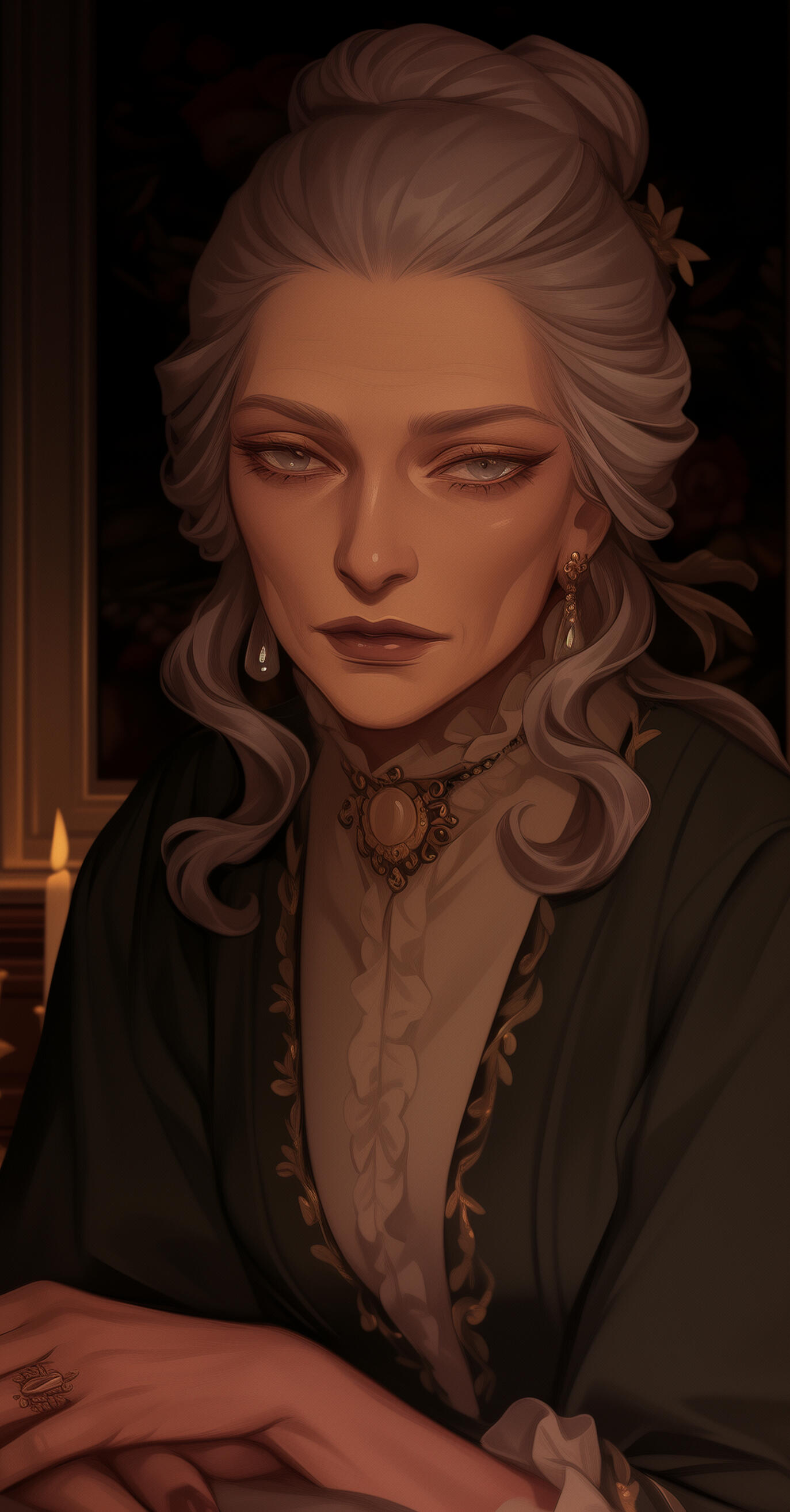 ❖ Matriarch of Conclave de Montnoir, Aliénor is France's oldest and most feared vampire leader—an iron-willed arbiter of law, turned in the 10th century and credited with centuries of royal decline.❖ Known as "The Iron Crown," she presides over Tribunal proceedings, maintains Montnoir's genealogical archives, and is rumored to have outlived her own sire and multiple uprisings; her precision and endurance are legendary among both mortal and immortal society.❖ Aliénor's rule is absolute—her judgment final and merciless, her influence shaping dynasties and destinies from the fortress-catacombs of Château Montnoir.