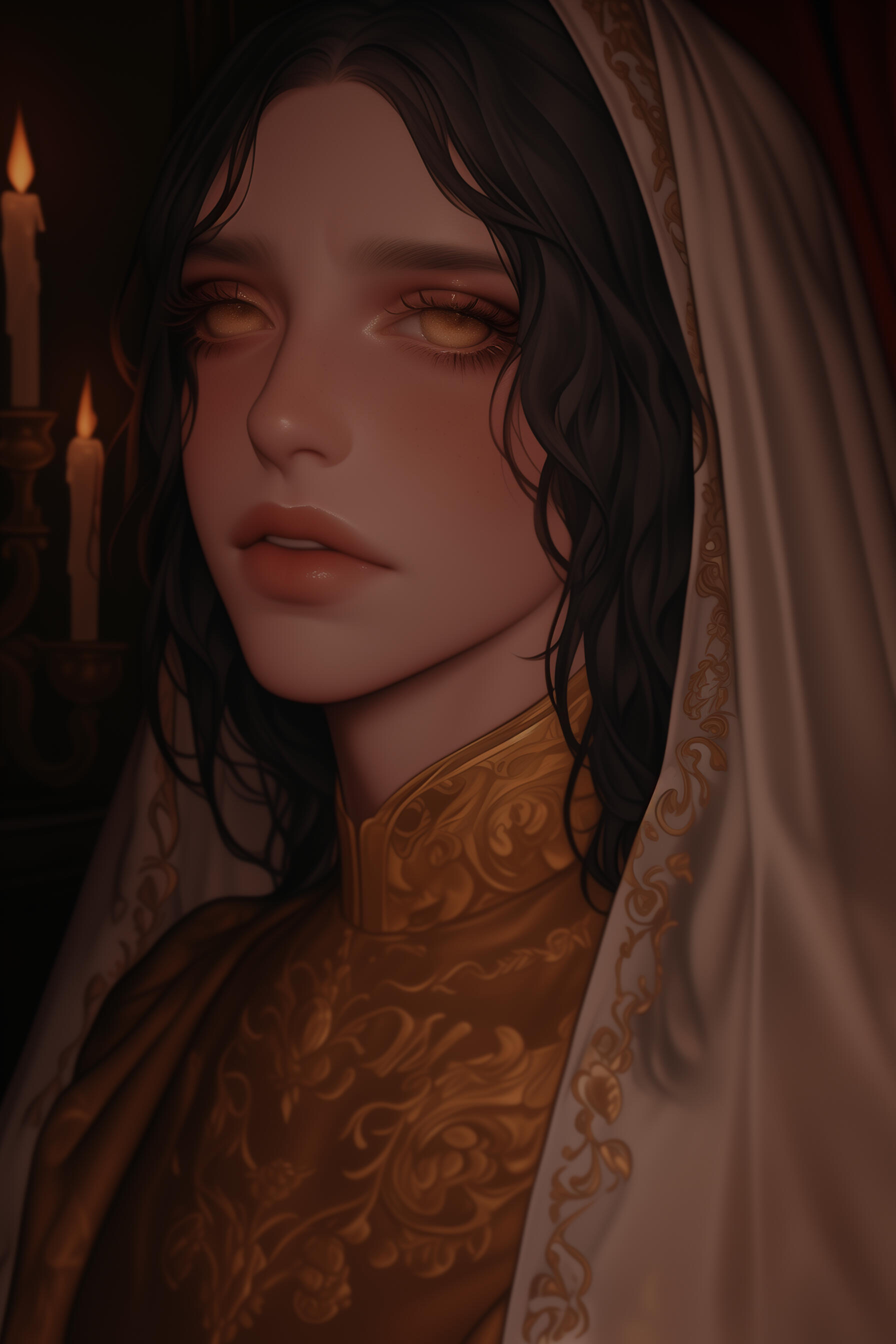 ❖ Céleste des Ombres-Dorées is Étienne’s pet ghost—his blind, veiled vampire daughter who drifts through the Palais like a walking omen, head cocked as if listening to secrets no one else can hear.❖ Turned young and kept close, she serves as the family’s private oracle and confidante to the Bastard Prince, her murmured warnings and half-formed visions quietly steering which debts get called in, which rivals are invited, and which kin are suddenly "retired."❖ To visiting nobles she’s a decorative curiosity; inside the house, everyone knows Céleste is the only creature Étienne truly fears disappointing—when she goes silent or smiles at the wrong moment, it usually means someone’s future has just been quietly condemned.